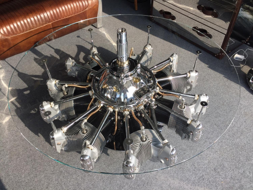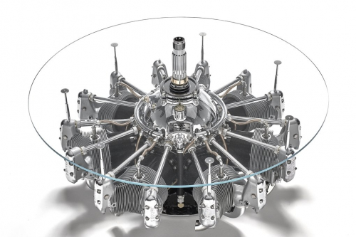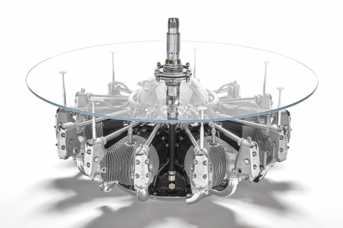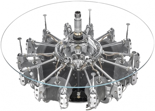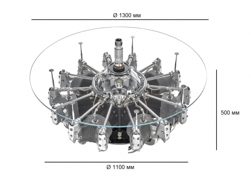 Погрузитесь в мир авиационного шика с кофейным столиком Aeronautica AIR-TAV0113. Этот уникальный предмет мебели, вдохновленный дизайном самолетов, сочетает в себе изысканные материалы, создавая акцентный и современный образ. Основание столика выполнено из 7-цилиндрового радиального двигателя Jacobs, который устанавливался на большое количество гражданских легких самолетов с 1933 по 1970 годы. Авиационный дизайн и высококачественная отделка делают столик идеальным центральным элементом любого пространства, наделяя его характером и уникальностью.