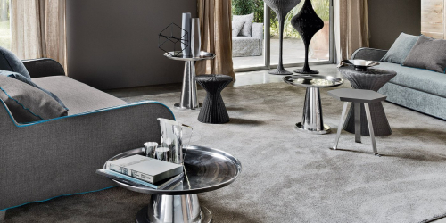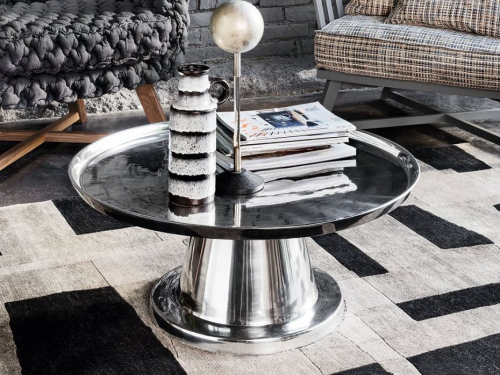 NEXT 141 - это круглый кофейный столик, который выполнен полностью из полированного алюминия.