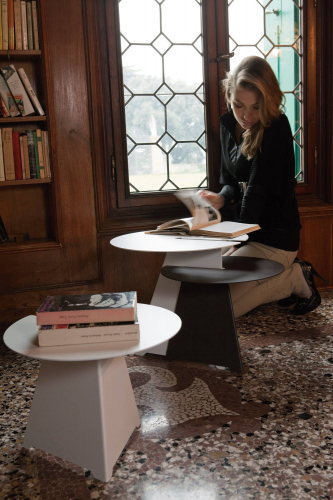 Abra - это низкий стол из окрашенной стали с покрытием, устойчивым к царапинам. Идеально подходит для использования в интерьерах, имеет круглую столешницу и полую треугольную опору. Это изделие, также подходящее для использования само по себе, было создано дизайнерами Neuland Paster и Geldmacher для лучшего использования в паре благодаря оригинальному способу соединения. Фактически, стол Abra доступен в двух размерах, которые продаются отдельно (33 или 42 сантиметра), и его изобретательность наиболее очевидна в сочетании с "двойником" разной высоты. Это делает его представителем минимализма, но с богатым характером.