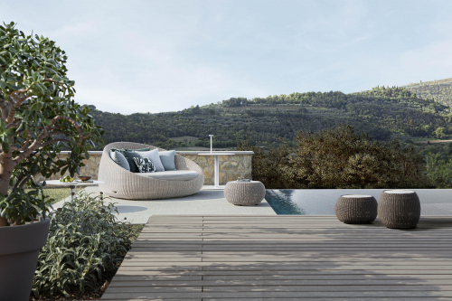 Коллекция, вдохновленная Африкой и красками песчаных земель. Twiga - это динамичная и универсальная коллекция, благодаря нейтральным природным оттенкам искусственного ротанга прекрасно сочетается с любой мебелью на открытых пространствах. Вся алюминиевая мебель Atmosphera имеет порошковое покрытие, котороые обеспечивает устойчивость поверхности к ударам и царапинам. Искусственный ротанг, искусно обработанный вручную, выполнен из экструдированного полиэтилена высокой плотности. Материалы, используемые для отделки, напоминают самые ценные натуральные волокна (ротанг, плетение, бамбук) и предлагают высокий стандарт качества. Они долговечны и устойчивы к любым атмосферным воздействиям, таким как дождь, соленая вода, а их цвет защищен от ультрафиолета. Прочный керамогранит, используемый для столешницы, получается путем высокотемпературного прессования чистых материалов, имеет полуглянцевый натуральный внешний вид.