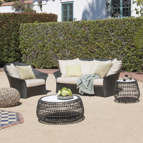 Превосходная эстетика коллекции Vino обусловлена прекрасным обрамлением и инновационными технологиями. Широко открытый узор плетения не позволяет этой просторной раме чувствовать себя тяжелой, она настолько же прочна, насколько и красива. Изделия коллекции изготовлені из алюминия и волокна JANUS, сотканного вручную. Эффектные изделия Vino Lava или Nimbus созданы для изысканных пространств как внутри, так и снаружи.
