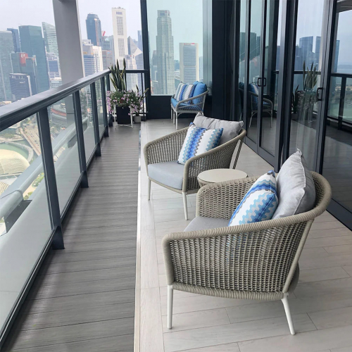 Knot - это коллекция для обеденной и гостиной зоны, которая отличается красивыми плетеными элементами ручной работы, поддерживаемыми легкой алюминиевой рамой. Используя технику макраме модифицированного рифового узла, этот ансамбль необычного дизайна настолько же прочен, насколько и превосходен.