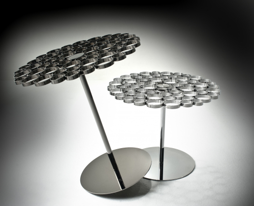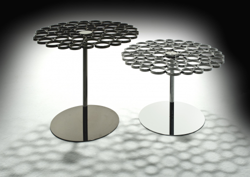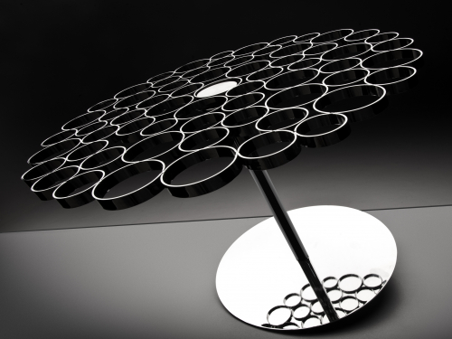 Изысканный журнальный столик Bubble с высокой тонкой ножкой на круглом основании из стали, завершением которой становится ажурная столешница, которая напоминает какой-то неизвестный цветок. Модель, привлекающая внимание, прекрасно подходит для обстановки современных стильных интерьеров частных домов, отелей, лаунж зон заведений высокого класса.
