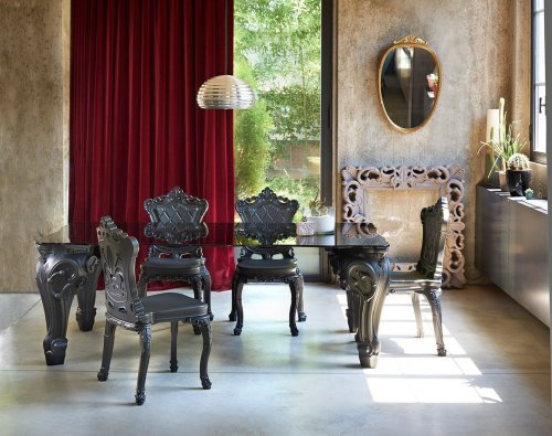 С его королевским и величественным представлением, Sir Of Love каждый вечер превращается в настоящее событие "black tie". Его четыре арочные ноги богаты деталями, как типичный итальянский стиль барокко, но они сделаны из полиэтилена, современного и популярного материала.