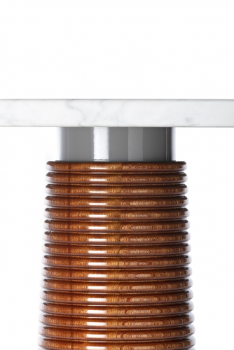 Стол Sunset Lounge – это новаторское сочетание каррарского мрамора и элитного дерева, воплощённые в творческом замысле Паолы Навоне. Оригинальная ножка стола изготовлена методом токарной обработки, благодаря которой она невероятно приятна на ощупь – как и гладкая столешница из мрамора, сохранившая естественный рисунок этого благородного минерала. Конструкция стола включает металлические элементы, создающие неповторимый сияющий эффект как при искусственном, так и при естественном освещении. Стол Sunset Lounge – прекрасный выбор для открытых площадок, у которых комфорт и изысканный дизайн – на главном месте.