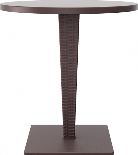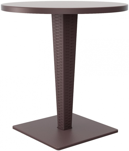 Пластиковый плетеный стол Riva выполнен из нескольких материалов: основание из окрашенного алюминия, колонна - из плетеного пластика, столешница - из верзалита.