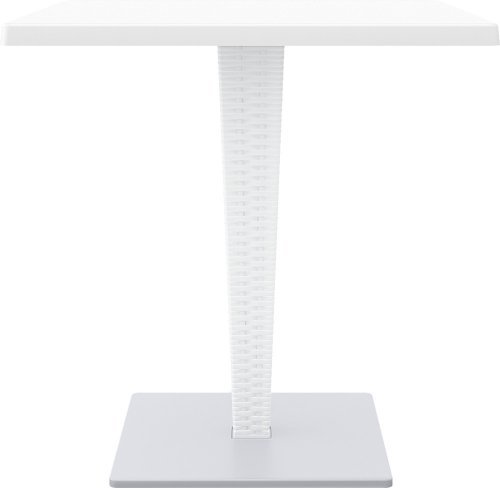 Пластиковый плетеный стол Riva выполнен из нескольких материалов: основание из окрашенного алюминия, колонна - из плетеного пластика, столешница - из верзалита.