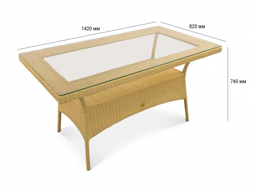 Стол Kipr прямоугольной формы рассчитан на комфортное размещение шести персон. Его прочная основа - цельносварной алюминиевый каркас с износостойким порошковым покрытием, дополненный долговечным плетением из искусственного ротанга. Практичная столешница из закаленного стекла легко вписывается в любой интерьер и неприхотлива в уходе.