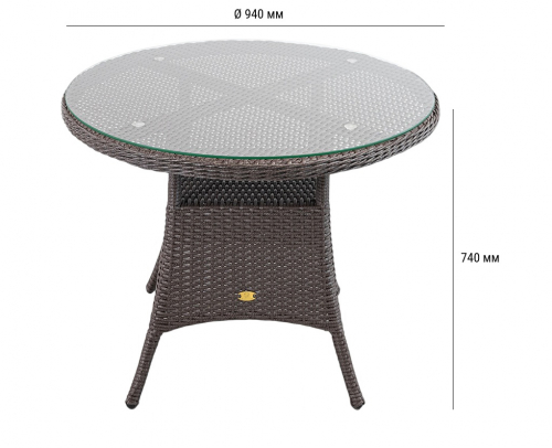Стол Kipr круглой формы рассчитан на комфортное размещение четырех персон. Его прочная основа - цельносварной алюминиевый каркас с износостойким порошковым покрытием, дополненный долговечным плетением из искусственного ротанга. Практичная столешница из закаленного стекла легко вписывается в любой интерьер и неприхотлива в уходе.