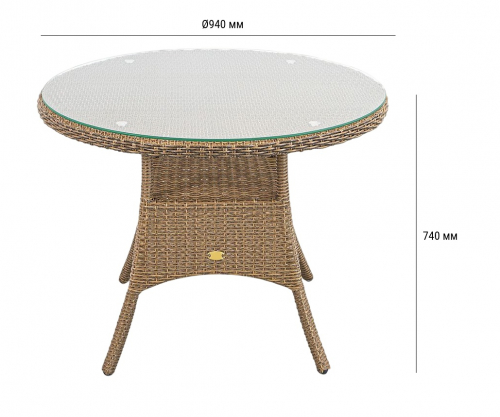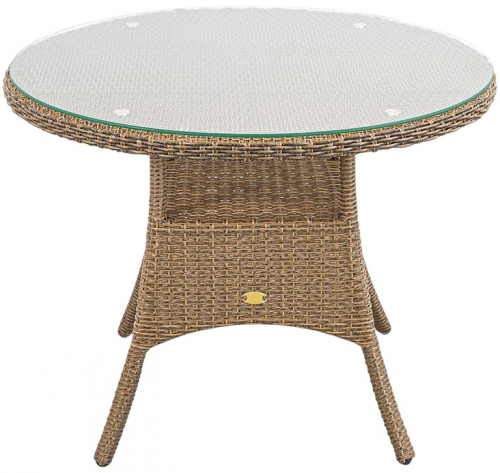 Стол Kipr круглой формы рассчитан на комфортное размещение четырех персон. Его прочная основа - цельносварной алюминиевый каркас с износостойким порошковым покрытием, дополненный долговечным плетением из искусственного ротанга. Практичная столешница из закаленного стекла легко вписывается в любой интерьер и неприхотлива в уходе.