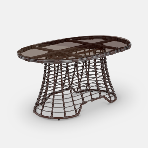 Стол Lotus с элегантной овальной столешницей создан для объединения людей. Плавные, лишенные острых углов линии формируют комфортную и гостеприимную атмосферу, идеальную для неспешных обедов и теплого общения. Визуальную глубину и уникальный характер модели подчеркивает многослойная структура: под прочной столешницей из закаленного стекла скрывается тонкое ажурное плетение искусственного ротанга. Эта игра текстур и материалов создает динамичный световой эффект, где блики естественного или искусственного света оживляют поверхность, добавляя сервировке особый шарм.