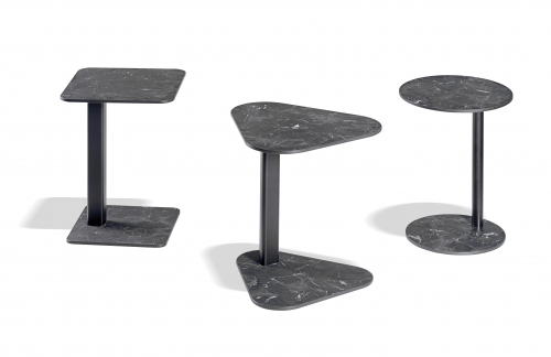 Коллекция Kicki переосмысливает привычную функциональность: легкая и аккуратная C‑образная опора делает приставной столик удобным для работы с ноутбуком, завтраков или отдыха, не занимая много места. Три варианта формы столешницы (круглая, квадратная, каплевидная) дают свободу выбора под стиль интерьера или экстерьера, создавая эстетичный акцент в офисе, гостиной или на террасе.