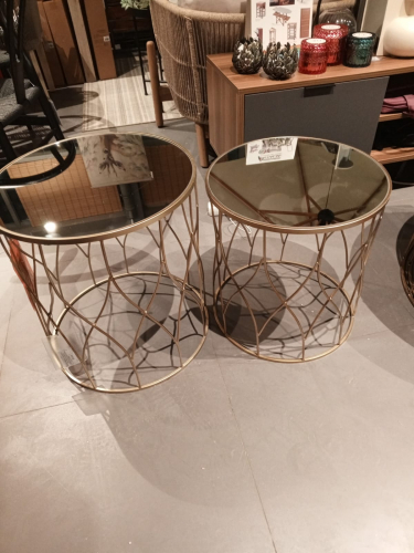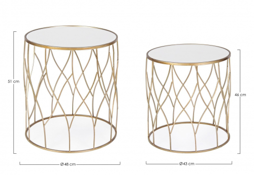 Комплект кофейных столиков Elenor – это изумительное решение для создания престижных зон отдыха, которые буду привлекать внимание и зазывать на приятное времяпрепровождение за чашкой кофе или чая. Набор состоит из двух изделий разных размеров. Отличное сочетание стального каркаса золотистого цвета и стеклянной столешницы придает набору элегантность и утончённость. Elenor станет изюминкой и ярким акцентом в вашем интерьере.