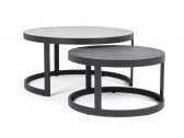 Комплект Jacob состоит из двух кофейных столиков, которые можно сдвинуть вместе. Каркасы столов изготовлены из алюминия с порошковым покрытием (полиэстер). Столешницы выполнены из керамики толщиной 10 мм. Современный дизайн, практичность и удобство делают столики идеальными для отдыха в саду или на террасе.