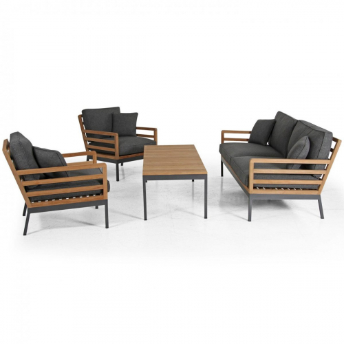 Очень стильный кофейный столик Zalongo, в котором высококачественный тик сочетается с алюминием с антрацитовым покрытием. Прямые ребра из тикового дерева усиливают впечатление качества и элегантности.