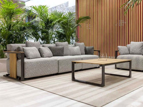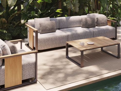 Дизайнер умело соединил тик и алюминий, чтобы создать потрясающий геометрический дизайн. Vondom приложил значительные усилия для усовершенствования коллекции, гарантируя, что каждый модуль имеет безупречно сварные соединения. Подушки, состоящие из быстросохнущей пены и высококачественной ткани, демонстрируют исключительную устойчивость к различным погодным условиям, включая стойкость к плесени и ультрафиолетовому излучению.