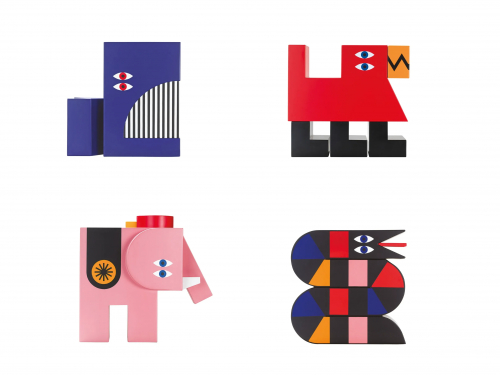 Кофейные столики представлены в виде четырех различных животных: черная змея Mambo, синий кит Otis, розовый слон Jumbo и красный верблюд Aziz.