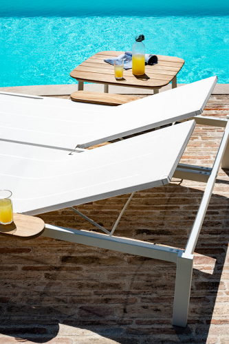 Диван, кресла для отдыха и журнальные столики привносят элегантность и стиль в зоны отдыха или у бассейна. Выполненный из алюминия и EMU-Tex лежак с резко очерченными линиями идеально подходит для создания гладких, стильных пространств и дополняется различными аксессуарами. Ассортимент также включает столы, как фиксированные, так и раздвижные, для удовлетворения любых требований к размеру. Это обеспечивает полную, адаптируемую серию, подходящую для всех видов использования.
