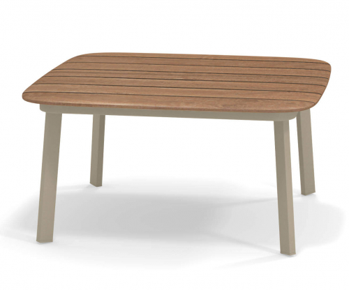 Материал столешницы: тик. Тик - это твердая древесина с высоким содержанием масла, подходящая для наружного использования, без покраски. Если он не имеет никакой защитной обработки, поверхность превратится в серебристо-серый цвет, естественную защиту внутренней части дерева, которая считается неотъемлемой частью очарования тика. Тик, используемый для продуктов EMU, сертифицирован FSC®.