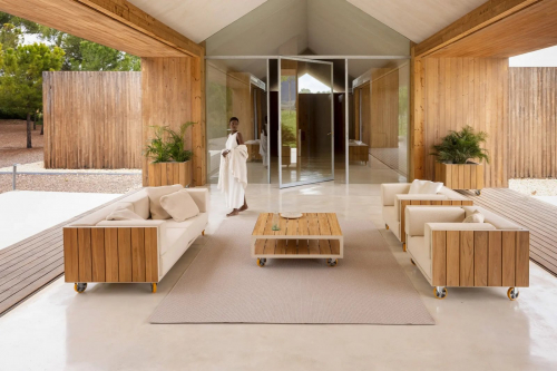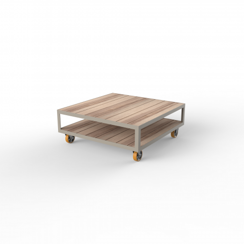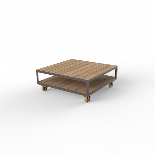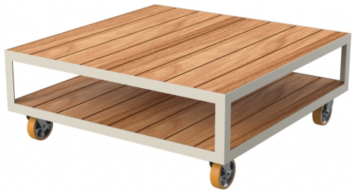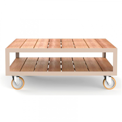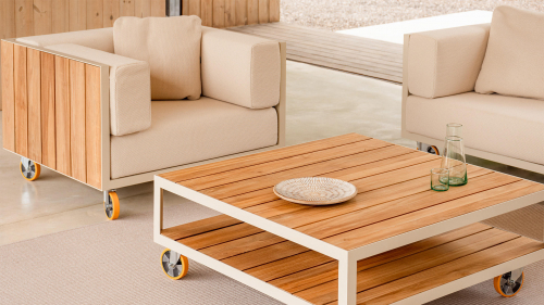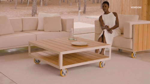 Коллекция Vineyard представляет собой коллекцию садовой мебели из алюминия и дерева в деревенском и теплом стиле. Разработанная Рамоном Эстеве, чтобы предложить минималистичное решение для открытых пространств, модель имеет прочную и долговечную конструкцию. Контраст между тиком и окрашенным металлом, а также колеса придают журнальному столику уникальную эстетику.