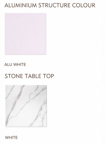 Журнальный столик Venice Stone сочетает в себе минималистичный дизайн и абсолютную устойчивость к погодным условиям. Каркас изготовлен из алюминия. Порошковое покрытие надёжно защищает от ржавчины, ультрафиолетового излучения и других погодных воздействий - идеально подходит для круглогодичного использования на открытом воздухе. Несмотря на свою прочность, столик остаётся приятно лёгким и удобным для перемещения.