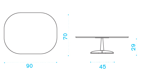 Металлическая коническая конструкция, которая поддерживает столешницу, опирается на основание, которое может быть закрыто крышкой из натурального или мореноготика.