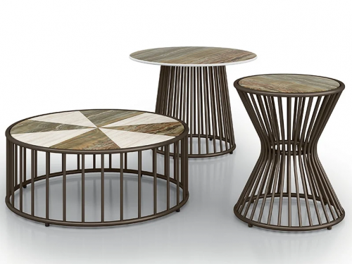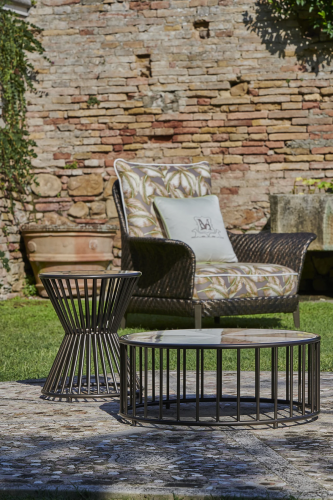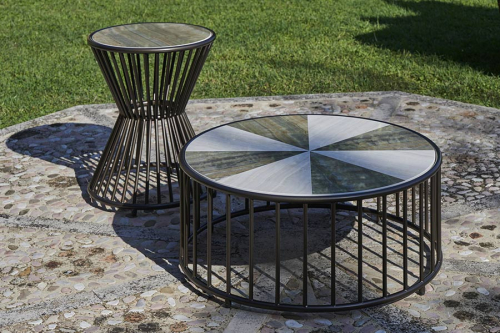 Столешница кофейного столика Yucca толщиной 10 мм выполнена из керамики с отделкой под мрамор. Яркие поверхности, соблазнительные цвета и очень эмоциональные прожилки превращают керамику в настоящий предмет интерьера с отличными характеристиками для использования на открытом воздухе, такими как водостойкость, защита от УФ-лучей, водонепроницаемость, устойчивость к истиранию и пятнам. Столешница столика также может быть выполнена из поочередно сегментированной керамики, прозрачного, лакированного или дымчатого закаленного стекла и натурального мрамора. Посмотреть палитру материалов Samuele Mazza.