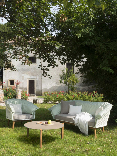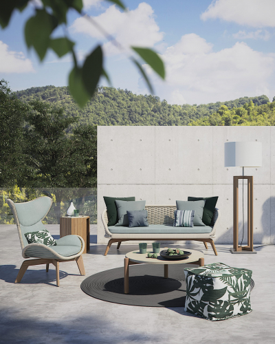 Мебель Atmosphera выполнена из тика, который выращивают на экологически устойчивых индонезийских плантациях. Богатое таниновым маслом, оно обеспечивает отличную стойкость даже в экстремальных условиях. Древесина устойчива к влажности, ультрафиолетовым лучам, холоду и резким перепадам температур. Поэтому это отличный материал для уличного применения. При длительном хранении тиковой мебели на открытом воздухе ее пигментация растворяется, приобретая мягкий серебристо-серый оттенок. Поскольку на начальном этапе это естественный процесс, серебристо-серый цвет может проявляться неравномерно. Чтобы сохранить первоначальный цветовой тон, фабрика предлагает специальный набор по уходу для использования один или несколько раз в год. Прочный керамогранит, используемый для столешницы, получается путем высокотемпературного прессования чистых материалов, имеет полуглянцевый натуральный внешний вид.