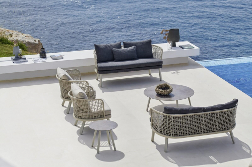 Элегантность, функциональность и универсальность являются отличительными чертами коллекции Emma, которая включает стулья, обеденные и барные кресла, и недавно пополнилась креслами бержер - изделием, в котором лучше всего выражено плетение спинки, а также креслами для отдыха, диванами, лежаками и журнальными столиками. Возможность создать лаунж зону всоответствии с вашими предпочтениями делает коллекцию универсальным предложением для любых современных пространств.