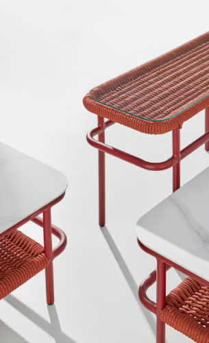 Набор для террасы и сада Lisboa состоит из 3-местного дивана, 2-местного дивана, двух удобных кресел, кофейного столика и бокового столика, который при необходимости можно расположить между креслами. Кофейный столик создан из уникального сочетания материалов: алюминия и веревки, со столешницей из спеченного камня, а боковой столик имеет прозрачную стеклянную столешницу. Подушки изготовлены из прочного текстиля, идеально подходящего для уличной мебели, и наполнены быстросохнущей пеной. Применение специально разработанных материалов позволяет использовать коллекцию на открытом воздухе в полной безопасности, обеспечивая максимальную защиту от атмосферных воздействий без ущерба для эстетики и комфорта.