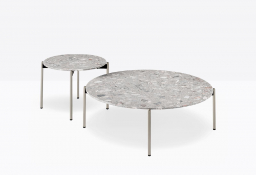 Кофейные столики коллекции Blume, вдохновленные идеей элегантности и изысканности, повторяют тот же стиль в форме цветка, которым обладают стулья и кресла этой же серии. Столешница столика заметно выступает за границы каркаса конструкции. Столики доступны в трех вариантах высоты (300 мм, 370 мм, 450 мм) с рамой из экструдированного алюминия и столешницами разных размеров из мрамора, композитного мрамора или твердого ламината. Со столами Blume возможно составлять разные композиции, если использовать насколько изделий вместе.