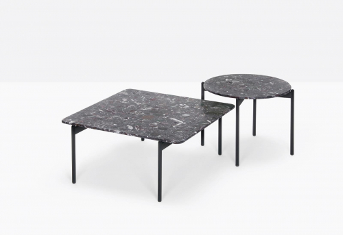 Кофейные столики коллекции Blume, вдохновленные идеей элегантности и изысканности, повторяют тот же стиль в форме цветка, которым обладают стулья и кресла этой же серии. Столешница столика заметно выступает за границы каркаса конструкции. Столики доступны в трех вариантах высоты (300 мм, 370 мм, 450 мм) с рамой из экструдированного алюминия и столешницами разных размеров из мрамора, композитного мрамора или твердого ламината. Со столами Blume возможно составлять разные композиции, если использовать насколько изделий вместе.
