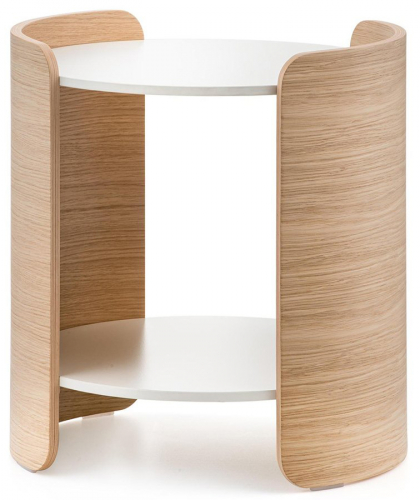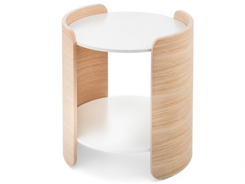 Parenthesis - это универсальный предмет мебели, подходящий для различных пространств и вариантов использования. Кофейный столик состоящий из двух круглых боковин виде скобок из шпинорованной дубовой фанеры в сочетании со столешницей и полкой из HPL или мрамора.