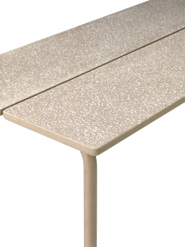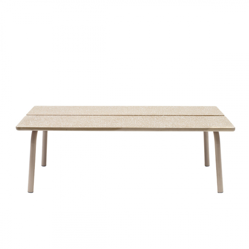 Для обеспечения большей адаптации к особенностям любого пространства и облегчения конфигурации мест отдыха на открытом воздухе коллекция Brezza включила в себя низкий кофейный столик, характеризующийся двумя большими планками, доступный в версии со столешницей из бетона или HPL.