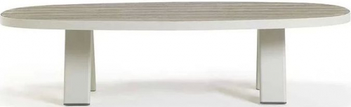 Цена на сайте указана за модель с каркасом из белого алюминия (Aluminium Warmwhite) и столешницей из мореноготика (Pickled Teak).