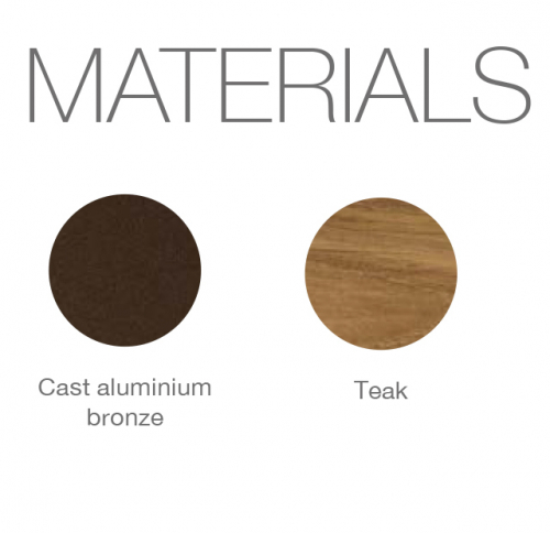 Столешница выполнена из тиковой древесины - превосходного материала, известного во всем мире красотой текстуры поверхности и превосходными физическими характеристиками.Это прочная, водостойкая древесина, устойчивая к соленым средам и разным погодным условиям. Для производства мебели Unopiù использует только самый доступный и прочный тик из индонезийских лесов, и только тот, который обладает высочайшим качеством - из центра ствола. Качество и экологическая устойчивость: тик Unopiù поступает только с сертифицированных, гарантированных и контролируемых государственных плантаций, где каждый спил дерева заменяется новым.