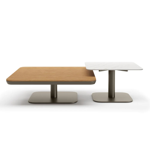 Кофейные столики Freedom изготовлены из стильного и современного устойчивого к ржавчине алюминия с порошковым покрытием, который заполняет пробел в дизайне Вашего 4-сезонного открытого пространства. Столешницы выполнены в натуральном тиковом или керамическом стиле (не требуют обслуживания). Столики идеально сочетаются с другими лаунж-коллекциями SNOC.