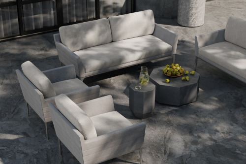 Коллекция Gemma - это мощный эскиз, синтезирующий округлые линии и комфорт, он включает в себя силу контраста во всем дизайне и углубляет ощущение открытого пространства. Функциональный ассортимент коллекции, состоящий из наборов для гостиной и обеденной зоны, а также каменные журнальные столики, создает собственную концепцию, полностью ломая традиционные и современные представления о дизайне своей формой и конструктивными особенностями. Элементы сидячих групп из коллекции Gemma с каркасной системой, полностью связанной вручную, оставляют элегантный и утонченный след в визуальном образе. Дизайн сочетает в себе легкие, но прочные и элегантные детали, одновременно демонстрируя свой интеллект. Коллекция Gemma предлагает возможность использования на открытом воздухе в течение всех четырех сезонов благодаря алюминиевому каркасу, который не зависит от погодных изменений, привносит домашний комфорт на открытые пространства. В коллекции Gemma SNOC представляет необыкновенную композицию для обстановки открытого пространства, которая полностью ломает традиционное восприятие и сочетает в себе современность с комфортом и продуманным дизайном.