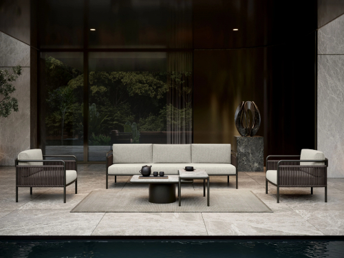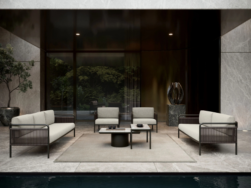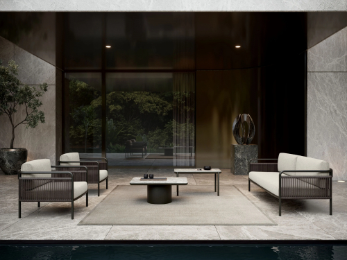 Ключевые предметы коллекции - кресла и диваны - выполнены в технике, где контраст между оплетенными веревкой и гладкими участками подчеркивается за счет минималистичной каркасной конструкции. Это сочетание создает эстетический баланс между грубоватой фактурой и утонченностью, позволяя простоте и индивидуальности сосуществовать в одном дизайне.