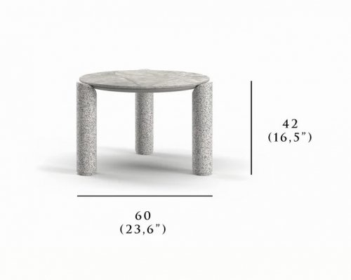 Кофейный столик из коллекции Lorvain сочетает четкие, сдержанные контуры серии с естественной фактурой натурального песчаника. Масси́вный каркас из песчаника придаёт модели ощущение устойчивости и тепла, а столешница из спеченного камня обеспечивает высокую износостойкость и простоту ухода - идеальное сочетание эстетики и практичности для террасы или веранды.