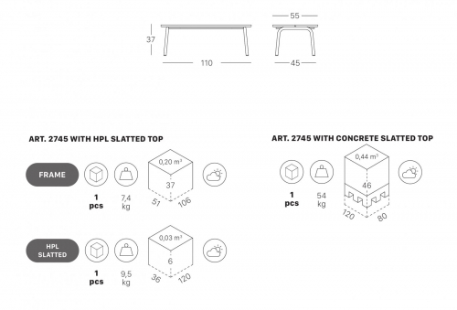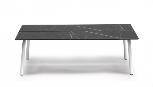 Для обеспечения большей адаптации к особенностям любого пространства и облегчения конфигурации мест отдыха на открытом воздухе коллекция Brezza включила в себя низкий кофейный столик, характеризующийся двумя большими планками, доступный в версии со столешницей из бетона или HPL.