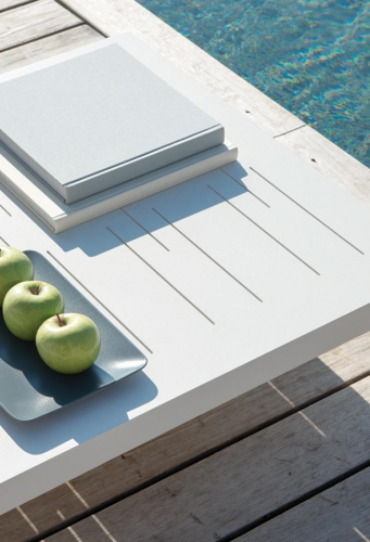 Используемые материалы - это алюминий и волокно LightWick, разработанное компанией Ethimo, с выдающимся неравномерным переплетением для динамического растягивающего эффекта. Волокно Lightwick добавляет дополнительный штрих естественного комфорта.