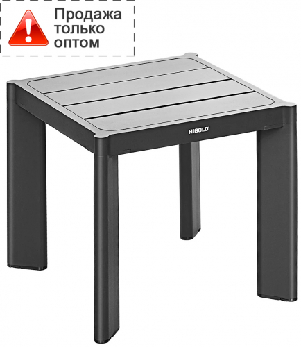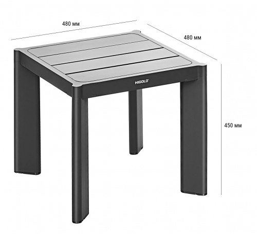 Столик выполнен из профилей 120х30 мм окрашенного в электростатическом поле алюминия толщиной 1.5 мм. Легкий, прочный и устойчивый материал. Его также называют «зеленым металлом», потому что его можно перерабатывать бесконечно долго без потери качества. Специальный порошок, используемый для окраски, защищает алюминий от коррозии, устойчив к атмосферным воздействиям. Краска обеспечивает полностью герметичную поверхность без пористых участков.
