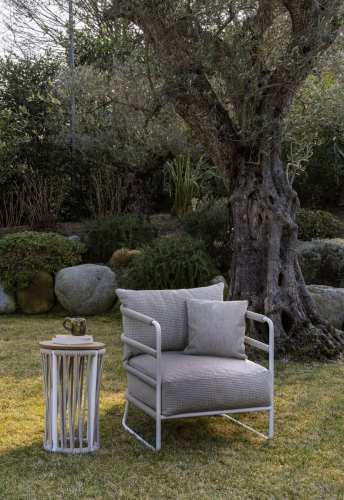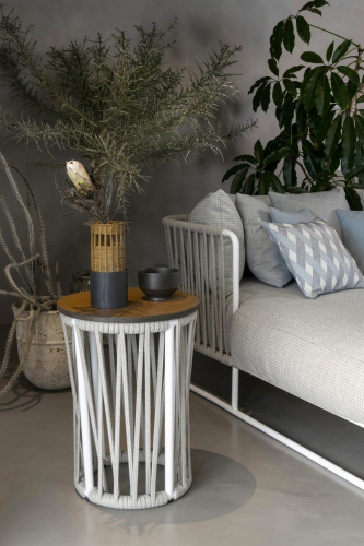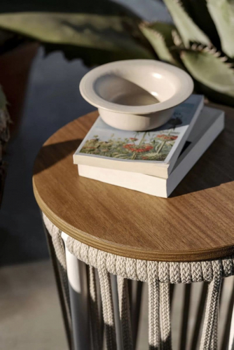 Новая коллекция Levante привносит очарование в сочетание и наложение различных материалов - металлической конструкции, ткани и роупа - с международным дизайном, но итальянской душой. Насыщенное поэтическое повествование о восходящем солнце, по сути, лежит в основе коллекции. Мастерство ремесленников и неповторимый стиль Tevet придают каждому предмету уличной мебели Levante сущность современного дизайна. Журнальный столик Levante выпускается в двух вариантах: высокий и тонкий или низкий и широкий. Круглая столешница - это солнце, которое доминирует над трубчатой металлической конструкцией, покрытой переплетающимися канатами, идущими сверху вниз и наоборот. Оригинально и уникально: журнальные столики Levante - идеальное решение для отдыха на открытом воздухе в любое время дня.