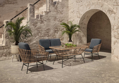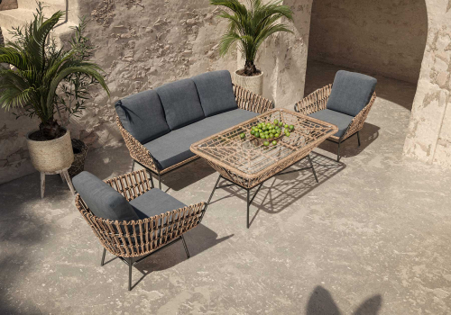 Коллекция Greta, образованная гармонией алюминия и переплетения синтетического ротанга, изменит атмосферу Вашего жилого пространства благодаря своему естественному цвету и уникальному дизайну плетения. Лаунж группа и столовый комплект Greta, подходящие для всех сезонов, с окрашенным в электростатическом поле нержавеющим алюминием, будут сопровождать Ваши разговоры в Вашем летнем и зимнем саду.