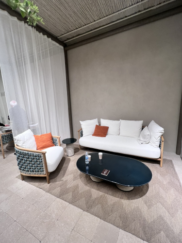 Коллекция Patio фабрики Ethimo была представлена на выставке Salone del Mobile в Милане 2024. Она отличается творческим использованием плетения в сочетании с естественной красотой тика. Мебель Patio предназначена для гостиных, столовых, открытых дворов с бассейном и фонтанами, украшающими сад. Название и особое арочное плетение напоминают традиционные внутренние патио, столь типичные для испанской архитектуры, где портики и лоджии были чуть ли не самыми важными частями в доме.