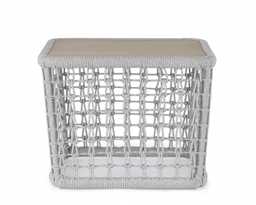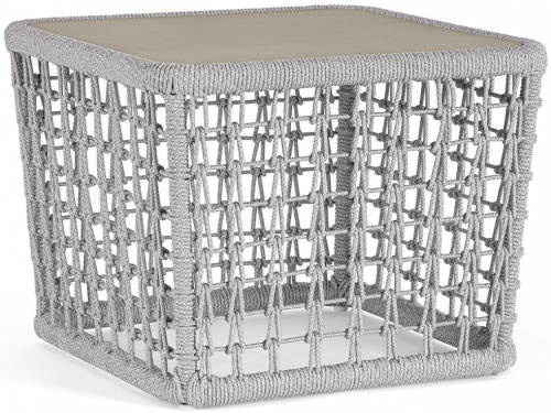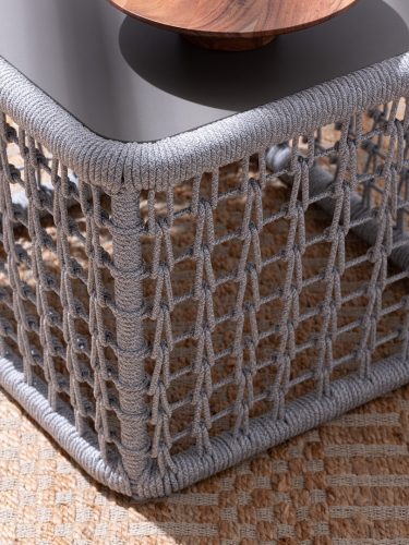 Кофейный столик Kollar сделан из алюминия с порошковым покрытием (полиэстер). Веревочное плетение из олефиновой ткани (100% полипропилен), благодаря которому столик выглядит стильно в любом помещении или на открытой площадке.