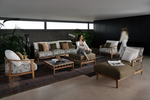 Особое плетение канатов ручной работы, неповторимый фирменный стиль Rever, украшает деревянную конструкцию со всех сторон и словно сшивает ее части сверху вниз и наоборот. Это самая настоящая нотка аутентичного современного дизайна, сделанного в Италии.