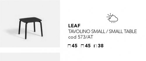 Новая коллекция Leaf ценится за свою элегантность и легкость. Коллекция столиков различной формы и размера имеет прочный алюминиевый каркас и столешницы из HPL толщиной 12 мм. Столики идеально дополнят лаунж кресла и диваны, создавая атмосферу на открытом пространстве.