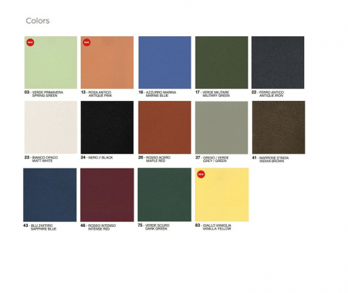 Материал: окрашенная сталь. Состав: железо и углеродный сплав с содержанием углерода менее 2%, обработанные, чтобы выдерживать воздействия окружающей среды, с помощью уникально антикоррозионной обработки EMU-Coat.